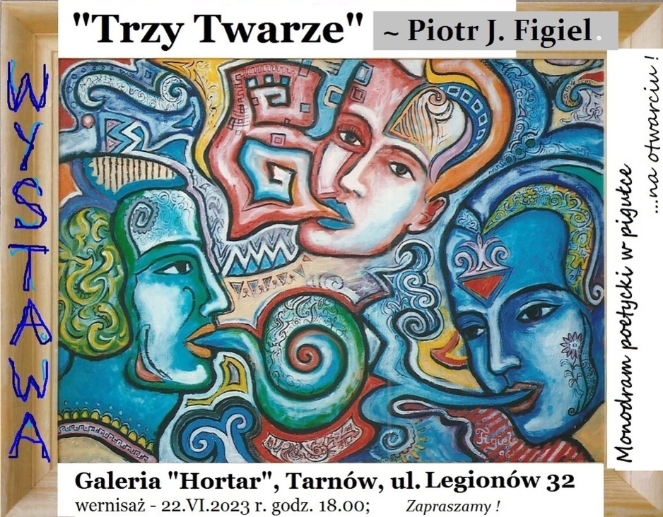 22. - III.2019 - Exhibition and author's evening entitled: "Three faces"; the whole as an Art Spectacle, which also promotes a book of the same title, which is a collection of poetry, painting, drawing and photography from about 30 years of creative work; Krakow, 15 Brzozowa Street, Poetry club and gallery "Pod katarynką" (Music background: M. Cichoń)
